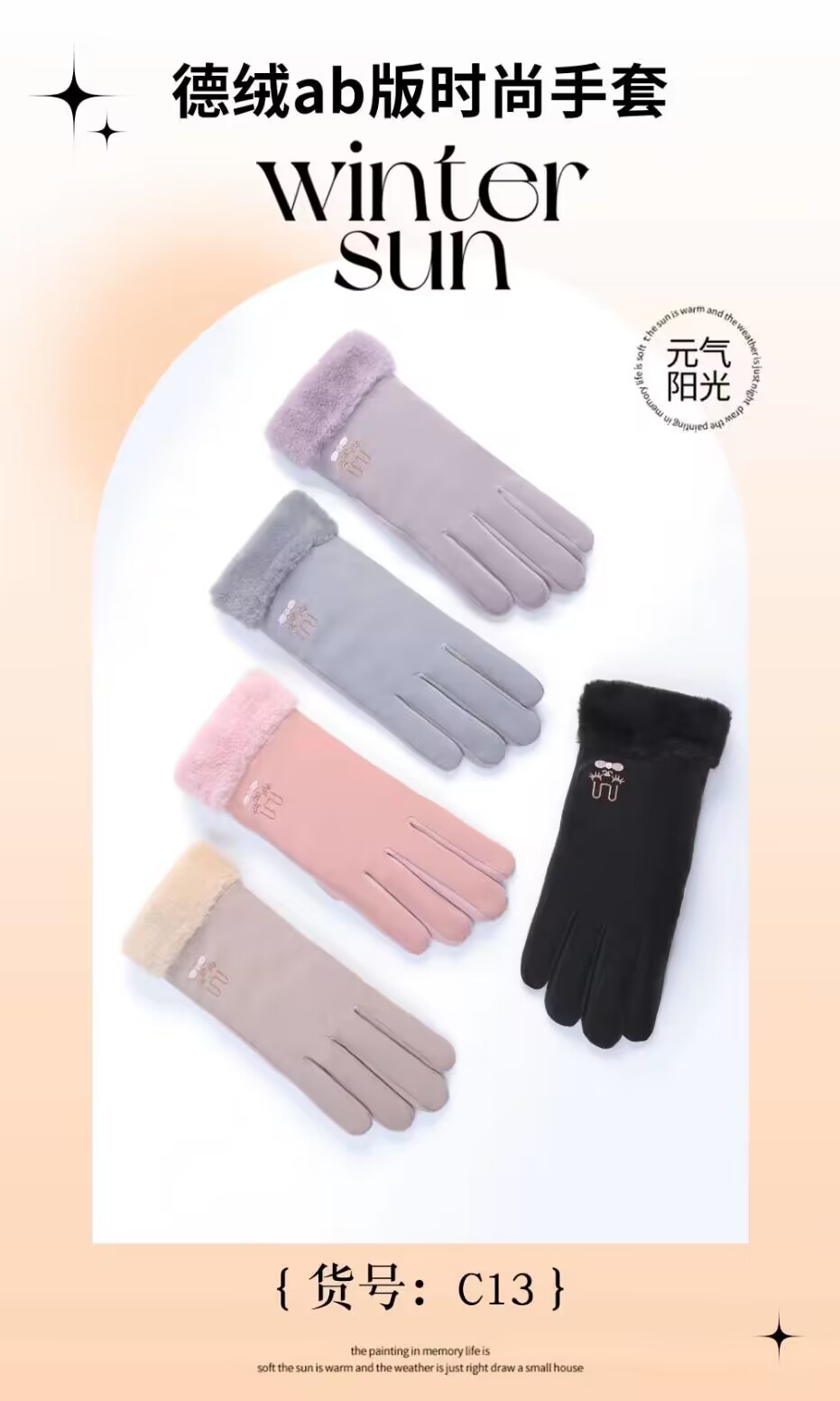 Cross-Border Safety Hand Protection Universal Gloves Women's Ab German Fleece Winter Warm Gloves Cycling Electric Gloves Touch Screen Skin Feeling Fleece Cotton Gloves